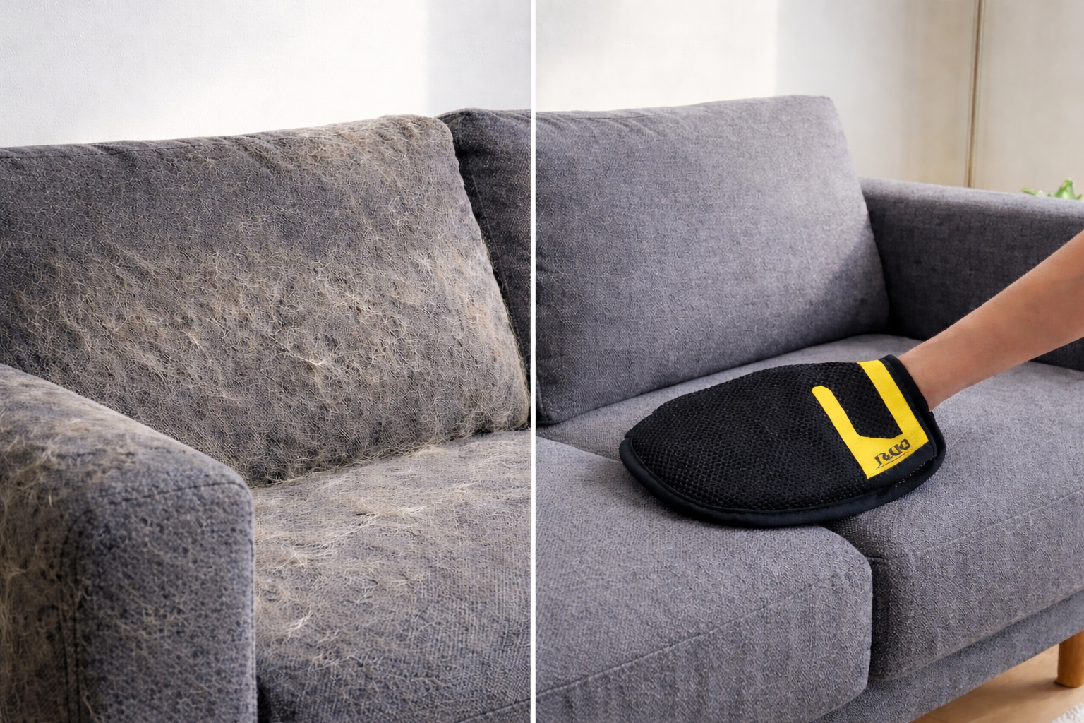 A reusable glove that lifts pet hair from couches, clothes, and car seats — without sticky rollers.